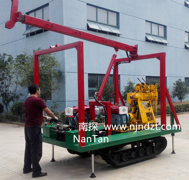 一、適用范圍:該履帶底盤(pán)承載重量達(dá)4T,可以裝載各種小型鉆機(jī),如:XY-1-1、XY-1、XY-1A、XY-1A(YJ)、XY-1A-4、XY-1A-5、XY-1B、XY-1B-1、XY-1B-2、XY-200、XY-200(YJ)、XY-200B、XY-200B-1、XY-200B-2、XY-200B-3、GXY-1、GXY-1A、GXY-1B、GXY-1C、GXY-2K、GXY-2Q、GXY-200B、GYQ-200、GYQ-200A、GXY-2C、GK180、KD100-4、KD150等,并可同時(shí)裝載BW160、BW160A、BW200或BW200A型泥漿泵,具有液壓起落鉆塔、行走方便等特點(diǎn),廣泛適用于公路、鐵路、水電、橋梁、壩基等的工程地質(zhì)勘察、地質(zhì)巖芯鉆探、物理勘察、小型灌漿孔、爆破孔、水井孔和空調(diào)孔的鉆進(jìn)。