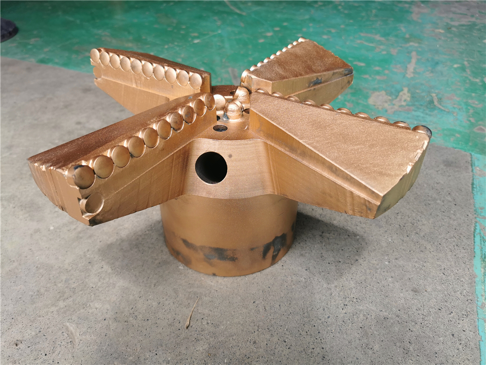 金剛石復(fù)合片(PDC)鉆頭,以金剛石復(fù)合片為主要切削元件,以刮削剪切原理進(jìn)行巖層破碎,適用于軟—中硬地層的鉆進(jìn),