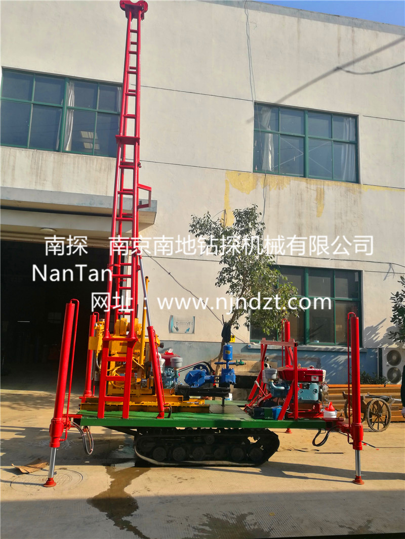 一、適用范圍:該履帶底盤承載重量達4T,可以裝載各種小型鉆機,如:XY-1-1、XY-1、XY-1A、XY-1A(YJ)、XY-1A-4、XY-1A-5、XY-1B、XY-200、XY-200(YJ)、XY-200-1、XY-200-2、XY-200A、XY-200A(YJ)、GXY-1、GXY-1A、GXY-1B、GXY-1C、GXY-2K、GXY-2Q、GXY-200B、GYQ-200、GYQ-200A、GXY-2C、GK180、KD100-4、KD150等,并可同時裝載BW160、BW160A、BW200或BW200A型泥漿泵,具有液壓自動起落鉆塔、行走方便等特點,廣泛適用于公路、鐵路、水電、橋梁、壩基等的工程地質(zhì)勘察、地質(zhì)巖芯鉆探、物理勘察、小型灌漿孔、爆破孔、水井孔和空調(diào)孔的鉆進??稍诤⒑訛?、沙地、水田等惡劣環(huán)境開展靜探作業(yè),結(jié)冰道路仍可行走。