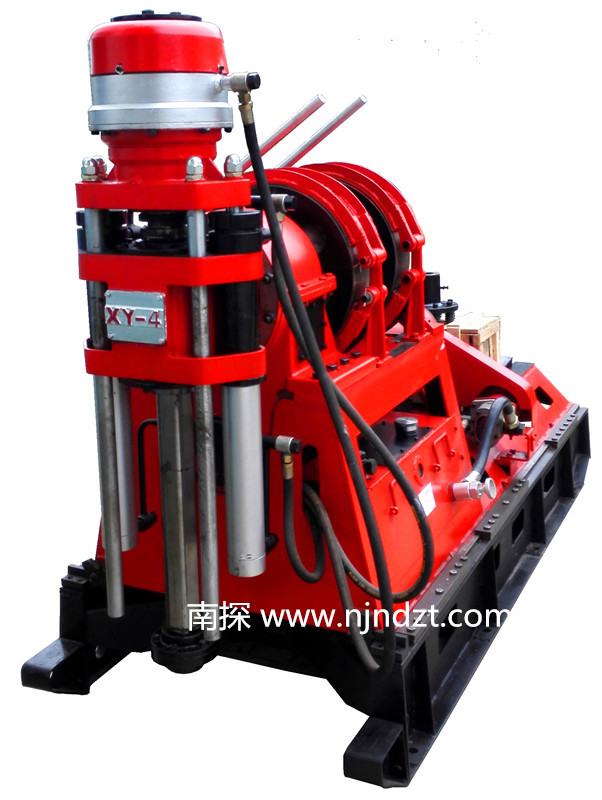 XY-4型鉆機(jī)是機(jī)械傳動液壓給進(jìn)的巖芯鉆機(jī),用42mm鉆桿能鉆1000米的孔。主要用于地表及坑道對固體礦床的金剛石、合金鉆探,可用于工程地質(zhì)勘察及地下水勘探,淺層石油,天然氣勘探、堤壩灌注、坑道通風(fēng)、排水鉆探等工程孔鉆進(jìn)。